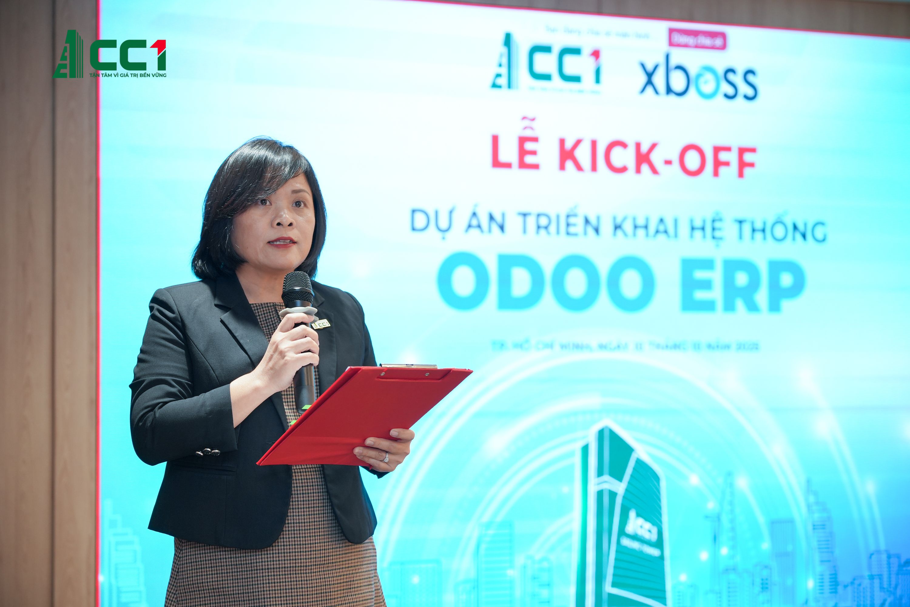 Tại chương trình, bà Phan Thị Phương Dung – Giám đốc Khối Quản trị Nguồn nhân lực công bố quyết định thành lập Ban Triển khai Dự án ODOO ERP, chịu trách nhiệm điều phối, giám sát và đảm bảo tiến độ, chất lượng dự án, hướng đến mục tiêu vận hành hệ thống từ ngày 01/01/2026.